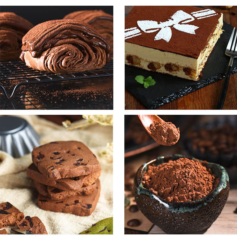 Cocoa powder can be used in cooking to make various delicious foods. In addition to being used in chocolate production, cocoa powder can also be used in baking, such as making cakes, cookies, and bread as desserts. Its dark color and unique flavor add rich taste and visual effects to the food. In addition, cocoa powder can also be used to make beverages such as hot chocolate, providing a warm and comfortable drinking experience.